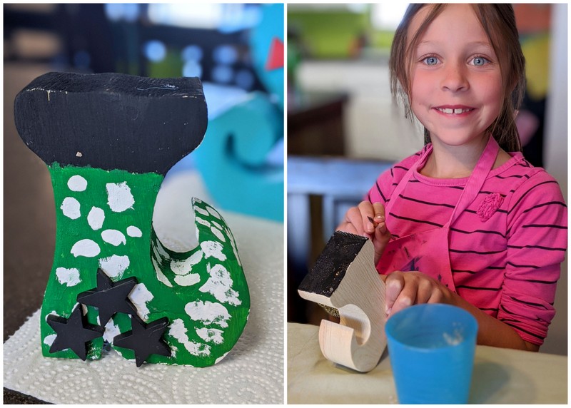Sometimes I am a fun mom and pull out the paint and some random wooden blocks I have stashed in the basement. This kept Eli entertained for a long time!